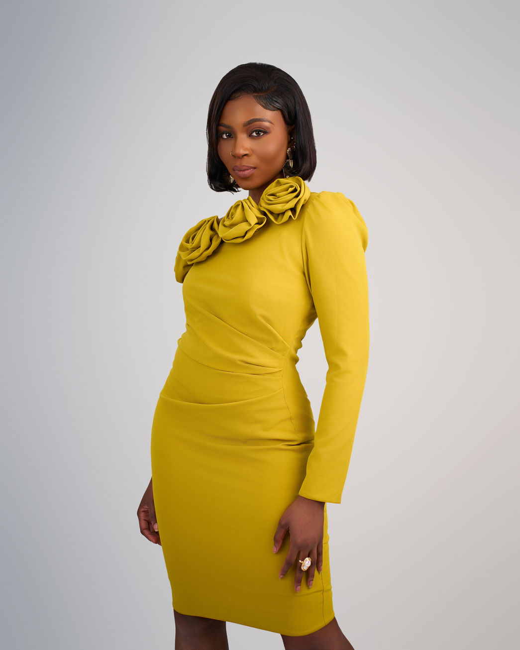 Elevate your style with the monostrap dress, exuding elegance and charm. This timeless piece features a bodycon silhouette with charming roses and ruched detailing, making it a wardrobe must-have. Perfect for making any woman feel confident and classy. #FashionGoals